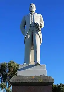Sir Joseph Ward statue | At the entrance of Bluff at the intersection of Blackwater, Shannon, and Gore Streets. (Originally located in the quadrangle of the former Invercargill Post Office.) | 1929 | Monumental marble carving. |