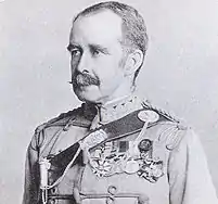He was appointed in command of a district in the Bengal Army on 8 December 1898, and posted to Rohilkhand, where he stayed in command until February 1900, when he returned home for a prolonged leave for medical reasons.[7] He was promoted to major-general on 19 March 1900. In April 1901 he was posted to Lucknow, and officiated in command there until late 1902 when the actual commanding officer Sir Alfred Gaselee arrived.[8] Meiklejohn had been appointed in command of the district at Derajat in August 1901,[9] but it appears he did not take up this position as he officiated in Lucknow.