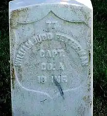 During the Atlanta campaign in 1864, Fetterman commanded the 2nd Battalion of the 18th US Infantry. This unit was part of John H. King's 2nd Brigade, Richard W. Johnson's 1st Division, John M. Palmer's XIV Corps, George Henry Thomas' Army of the Cumberland.[3] According to Fetterman's report in the Official Records, the 2nd Battalion skirmished at Buzzard Roost Gap and Resaca. In fighting near Pickett's Mill on May 31, the battalion sustained a loss of 1 officer and 33 men wounded. The battalion skirmished at the Battle of Kennesaw Mountain and took part in an attack that overran a line of Confederate rifle pits on July 4. After July 5, the companies of the 2nd Battalion were merged with the 1st Battalion of the 18th US Infantry. Fetterman subsequently was assigned as Assistant Adjutant General of the 2nd Brigade and reported on a successful attack at the Battle of Jonesborough on September 1. In this action, the 18th US Infantry suffered losses of 43 killed or wounded and 8 missing out of the 269 officers and men it took into battle.[4]