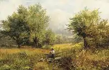 George Turner served on the Art Committee of Derby Art Gallery and both his and William's paintings are included in the city's collection.[4] Turner lived at various places, including Fulham, Loughton, (Essex), at Deerholme in Levens,[5] and at Yew Tree Cottage, Applethwaite, Keswick, where he painting some of his best known paintings of the Lake District. Following the death of William's mother in 1900 his father remarried in 1903, to Kate Stevens Smith. George Turner died in 1910, leaving the majority of his estate to his second wife. William received a small legacy of £100.