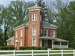 William M. Cockrum House, also known as Cockrum Hall, is a historic home located at Oakland City, Gibson County, Indiana. It was built in 1876, and is a two-story, Italian Villa style brick dwelling with a one-story wing. It features a three-story square corner tower set at a 45 degree angle, round and segmental arched windows, and bracketed cornice.[2]: 2