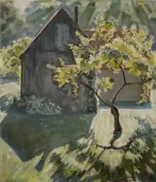 Besides Pearson and Garber, Goodell's instructors during his short stay at the PAFA included Henry McCarter[13] and Hugh Breckenridge.[14] Garber was an early member of the New Hope art colony[15] and an influential teacher.[16] Garber's technique of backlighting figures is found in several of Goodell's works in which subjects appear bathed in a halo of light (Pastoral, Willow in Sunlight). Like Garber, Goodell's interest was in creating sense of eternal or spiritual light rather than capturing the ephemeral or fleeting effects associated with impressionism.