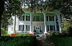 The William Perkins House, now known as the Freemount, is a historic Greek Revival style house in Eutaw, Alabama, United States. The house is a two-story wood-framed building on a raised brick foundation. Four monumental Ionic columns span the front portico. It was built in 1850 by William Perkins on the Eutaw Town Square.[2] According to the 1850 U. S. Federal Census Slave Schedule, William Perkins' household in Greene County included eleven enslaved people, four women and seven men. Their ages ranged from 2–45 years old, and Mr. Perkins is listed as the slave owner.[3] The house was recorded by the Historic American Buildings Survey in 1934. It was added to the National Register of Historic Places as a part of the Antebellum Homes in Eutaw Thematic Resource on April 2, 1982, due to its architectural significance.[1] It is also listed on the Alabama Register of Landmarks and Heritage.[2]