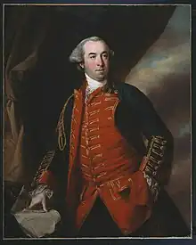 As part of Burgoyne's army, he was captured at Saratoga in 1777. He is depicted in the painting of the Surrender of General Burgoyne by John Trumbull.[1][2] He was then a part of the Convention Army until he was exchanged for American General Benjamin Lincoln in 1780. While a prisoner in Virginia, he was one of the British officers who was entertained at the home of Thomas Jefferson. After the exchange he was able to fight once again, and was sent by Clinton from New York to meet up with Brigadier General Benedict Arnold (who was now on the British side) in Virginia.