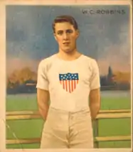 William C. Robbins, wearing the 1908 U.S. Olympic team shirt, from the 1910 Mecca Cigarettes Champion Athlete & Prize Fighter Series trading card.