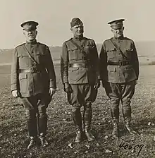 The commander of the 36th Division, Major General William R. Smith (left), together with his two infantry brigade commanders, Brigadier General John A. Hulen, commanding the 71st Brigade, and Brigadier General Pegram Whitworth, commanding the 72nd Brigade, pictured here at Lignieres, Yonne, France, December 8, 1918.