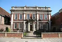 • Fydell House, Boston. This early 18th century house was attributed to Sands by Nikolaus Pevsner. Previously the house had been attributed to Henry Bell. Pevsner dated the house to 1726, fifteen years after Bell’s death,[3] dismissing Bell as the architect. More recent research suggests that Fydell House had been built before 1704, in which case Bell may have been the architect. The argument that Fydell House was by Sands is based on the similarity of certain design features with the Moulton Chapel, designed by Sands in 1722. Both buildings have similar giant Doric order pilasters and appear to be influenced by the early eighteenth century Dutch brick architectural tradition. Pevsner, however, views it as the work of a provincial hand.[4]
