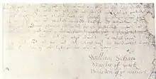 Some payments for Schaw's building work, at Falkland Palace and Stirling Castle are documented by exchequer vouchers in the National Records of Scotland.[14] A record of the building work at the Palace of Holyroodhouse he supervised in 1599 survives. The works involved masons, slaters, plumbers, and joiners making repairs to the court and the king's kitchens, the steeple and clock, and the King's billiard table, and other alterations to the palace. Schaw signed off the account weekly with his name, or as "Maistir of Wark".[15] On 8 July 1601, James VI sent William to consult with Master John Gordon on the construction of a monument to the King's rescue from the Gowrie House conspiracy the previous year. James VI wrote to Gordon that William would "conferre with yow thairanent, that ye maye agree upon the forme, devyse, and superscriptionis."[16]