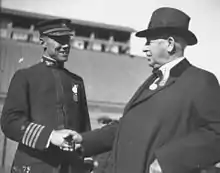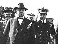 Despite threats on his life, Stephens remained publicly visible throughout his governorship. He was part of the general welcoming committee when Edward, Prince of Wales, arrived aboard HMS Renown in San Diego Bay in 1920, during the future British monarch's first visit to California.[8] Stephens was also present when his daughter, (Barbara) Mrs. Randolph T. Zane, ceremonially launched the battleship USS California.