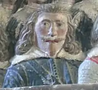 Relief sculpture of William Strode (1594–1645), MP, detail from mural monument in St Mary's Church, Plympton, of his father Sir William Strode (d.1637) of Newnham
