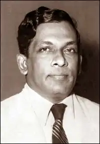While in England, William de Silva joined the India League and a Marxist study group with other Ceylonese students in London. He then returned to Ceylon and joined the Lanka Sama Samaja Party (LSSP).[3] During World War II, he was an anti-war movement leader and was imprisoned in Bogambara Prison and Badulla Prison in Sri Lanka (1943–45). He became a Ceylonese Member of Parliament in 1947 and 1953. He was leader of the All-Ceylon Estate Workers Union and Vice-President of the All-Ceylon Congress of Samasamaja Youth Leagues. He separated from the LSSP in October 1953 and joined the Viplavakari Lanka Sama Samaja Party (VLLSP). He was the founding leader of Mahajana Eksath Peramuna. He was Cabinet Minister of Industries and Fisheries in S. W. R. D. Bandaranaike's SLFP-MEP coalition government (1956–59).[4][5] He became a member of parliament in 1960 and was Vice-President of the Sri Lanka Freedom Party. In 1970, he became the Ceylon High Commissioner to Canada.