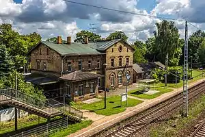 Wilmersdorf (Angermünde) station (German: Bahnhof Wilmersdorf (Angermünde)) is a railway station in the Wilmersdorf district in the municipality of Angermünde, located in the Uckermark district in Brandenburg, Germany. The station lies on the Angermünde–Stralsund railway and the train services are operated by Deutsche Bahn.