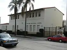 St. Gregory Nazianzen is a Catholic church owned by the Archdiocese of Los Angeles since 1923. The current cast concrete building and adjacent school were dedicated in 1938, but the area around the intersection of Norton and 9th Street had been operating as a church and school for fifteen years prior.[17][18]