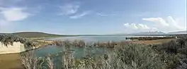 ![]() Panorama across Wilson Reservoir, Nevada from the diversion spillway | |