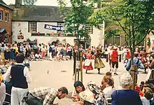 The original festival was founded in 1979/82 (see below) as a traditional festival of folk dance and music. It began as a one-day event, but quickly grew to become a weekend-long festival, held annually over Friday, Saturday and Sunday of the second weekend in June. It is still one of the largest gathering of dance teams and musicians in the South of England, attracting an audience of up to 70,000 people. Several streets near the ancient Wimborne Minster are closed during the Festival. Attractions include concerts, ceilidhs, workshops, dance displays, street markets and family areas.[1]
