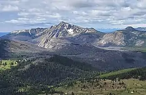 Windy Peak[2] is an 8,333-foot (2,540-metre) mountain summit located in Okanogan County in Washington state. It is part of the Okanogan Range which is a sub-range of the North Cascades and Cascade Range. The mountain is situated 5 miles (8.0 km) south of the Canada–United States border, on the east side of the Cascade crest, in the Pasayten Wilderness, on land managed by the Okanogan–Wenatchee National Forest. The nearest higher peak is Haystack Mountain, 9.24 miles (14.87 km) to the northwest in Canada.[1] Precipitation runoff from Windy Peak drains into tributaries of the Methow River and Similkameen River.