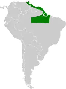 It remains fairly common in Suriname, French Guiana and parts of Brazil, and is therefore considered to be of least concern by BirdLife International and IUCN. It is rare to uncommon in Venezuela and Guyana where threatened by trapping for the wild bird trade.