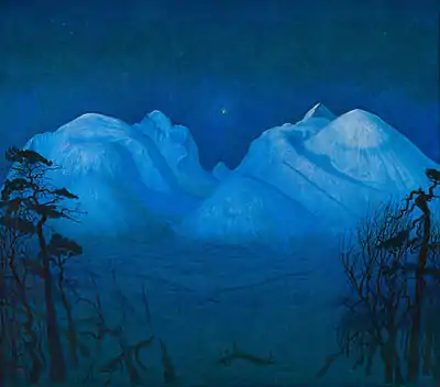 Winter Night in the Mountains (Norwegian: Vinternatt i fjellene), also known as Winter Night in Rondane (Norwegian: Vinternatt i Rondane), is the name of several versions of a composition created in several techniques by the Norwegian artist Harald Sohlberg (1869–1935). The most famous version is an oil painting completed in 1914 and held by the National Gallery in Oslo since 1918.