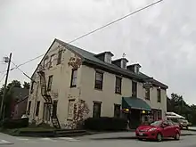 Another historic building, the (Old) Commercial House at the corner of Main and Commercial Streets, is a large brick structure built in 1833 - 1834. The original building was financed by the shareholders of the local Voluntary Hotel Association to serve as a way station for businessmen and travelers at this important transportation node between ferry transport up the Penobscot River and coach and goods travel along the north/south highway to Bangor. It was originally planned as a 40 bed hotel, with a large hall on the ground floor. Over the next decades, the Commercial House hall became a popular venue for local events, including the celebration of the Winterport Township Incorporation in 1860. Despite multiple changes in ownership, the hotel and inn continued to be used as a relay point for Concord commercial coaches traveling along the north/south highway.[3] In 1965 the building was gutted by fire following an Independence Day celebration. It was not until 1973 that an investor was found to restore the historic building. It is now run as the Old Winterport Commercial House, a Bed & Breakfast with an antique store on the ground floor.