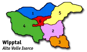 ![]() Wipptal district (highlighted in green) within South Tyrol | |