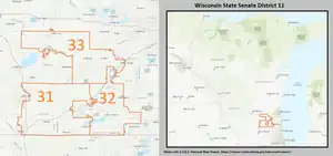 - ↑ "Wisconsin Legislative Districts - Senate District 11 Boundaries". Wisconsin Legislature. Retrieved March 6, 2021.