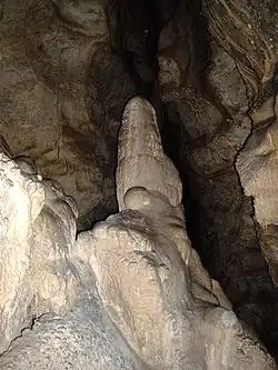 ![]() A large stalagmite near the entrance of the Witches' Cave | |