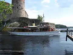 Crichton wanted to extend the company portfolio to complete vessels.[10] The company's first ships were not built in Turku but delivered in parts to Vähä-Äiniö yard at lake Päijänne, 230 km away from Turku. The ships were paddle steamers built by local craftsmen under supervision of specialists sent by Crichton. The first one, named Ensimmäinen ("first") was powered by a small, 12-hp engine and handed over in 1863. The subsequent Toinen ("second") was delivered in the following year and had a 25-hp engine. Both ships were intended for log tugging. Three more ships were built at Vähä-Äiniö yard: passenger ships Seura, which was a 28.8 metres long, and 33.7-metre Lahtis were both paddle steamers and handed over in 1864. In 1866 the Imperial Russian Army ordered Knyas Aleksei, a propeller equipped ship for Päijänne transportation.[11]
