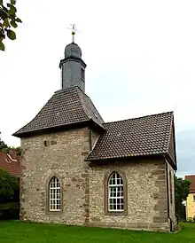 Wolbrechtshausen is habitat of a small chapel built in the 14th century. Before it became a chapel it was a defence tower. A few centuries later the inhabitants added a nave and church windows. From the original defence tower are the wall strength from over one meter and the crenels conserved.[5]