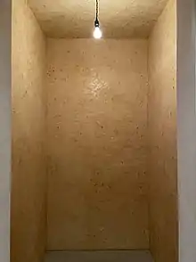 Since 1983, onwards his involvement with materials progressed into rice, beeswax, sealing wax, Burmese lacquer and some metals. At first he made smaller beeswax pieces which then developed into major large-scale pieces like beeswax chambers and stepped pyramids called "Zikkurats". His selection of those materials are deeply meaningful, but they do not at all represent the limit of his intent in their essence; rather they serve as vehicles to by far greater complex ideas. He has always been less concerned with innovation or formal development than with the notion of continuity. His oeuvre is not to be approached in a chronological order, but in a cyclical manner, as he uses the same forms and materials regularly. Laib considers himself as a vehicle for ideas of universality and timelessness that are already present in nature. In his work, the micro often connects to the macro in a way that reconfigures our place in the universe. He can be quoted by saying: “I did with my art works what I wanted to do as a doctor. I never changed my profession.” In 2000, he creates the first permanent wax chamber in Roc del Maure in the Pyrenees mountains near Perpignan. Other wax chambers follow near his studio in southern Germany, in the lower Engadin in Switzerland, in the Phillips Collection in Washington, D.C., and a 50-meter-long corridor for Anselm Kiefer in Barjac, southern France, realized in 2014.