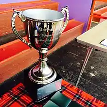 • Valerie Fraser Trophy – The equivalent of the men's Camanachd Cup for the women's game. However a club need only win two games to win it. In order to increase the number of teams competing, Division Two teams were permitted entry in 2012. It has been sponsored by Peter Gow of Inverness for several years.