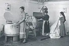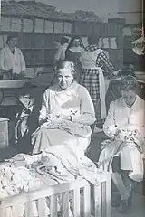 Spanish women supported the Republican war efforts behind the front lines. They made uniforms, worked in munitions factors, and served in women's corps similar to those organized by the US and British during World War I.[39] In Madrid, women would go in pairs to cafes around the city, collecting money to support in the war effort.[39] Many women on the Republican side joined JSU, serving in civilian roles near the front.[40]