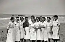 Nationalist supporting women behind Nationalist lines also sometimes were involved in auxiliary roles. This included working as nurses, provisioners and support personnel.[33][32] They were encouraged to do so by men as a means of supporting the traditional Spanish family structure.[32]