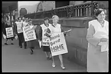 In Canada, the anti-nuclear Canadian Voice of Women for Peace lobbied the Canadian government to launch peace initiatives against the War. In February 1965, they met with Paul Martin Sr., the Canadian Secretary of State for External Affairs.[118] In 1968, Ursula Franklin and Muriel Duckworth presented a brief to a House of Commons committee asserting that Canada and the United States had entered into military trade agreements without adequate public debate.[119] In 1971, the Vancouver Indo-Chinese Women's Conference was held in protest of the War.[120][121]