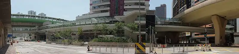 Wong Chuk Hang (Chinese: 黃竹坑) is an elevated MTR rapid transit station in Hong Kong on the eastern section of the South Island line, built on the Staunton Creek Nullah and off the old site of Wong Chuk Hang Estate in Staunton Creek (Chung Mei). It is named after the locality of the same name further east and serves residents in that area, as well as connect to a public transport interchange on a widened section of Heung Yip Road. A network of footbridges serves future commercial and residential areas, and the station exists as a hub to the Shum Wan area as a whole. The station opened on 28 December 2016[1] with the rest of the South Island line. The South Island line depot is located to the south.