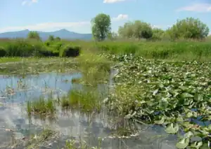 In September 1992, U.S. Congress appropriated funds for the Bureau of Land Management to purchase 3,200 acres (13 km2) of natural wetland along the north end of Agency Lake at the mouth of the Wood River. This wetland area was converted to pasture land in the 1950s and 1960s. The land purchase was completed in 1994. Since acquiring the Wood River property, the Bureau of Land Management has successfully restored the wetland area and adjacent Wood River channel to a more natural state. The channel restoration project was completed in 2001. The new channel meanders through the marsh, increasing the length of the Wood River by over one half mile. Overall, this project has improved water quality and created better habitat for fish, birds, and wildlife.[8]