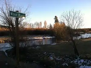 The Wood River flows through Klamath County, Oregon with headwaters emanating from a large natural spring located in Jackson F. Kimball State Recreation Site. The aquifer that feeds the spring is believed to originate 20 miles (32 km) to the northwest in the east side drainage of Crater Lake National Park. The Wood River meanders through pine forest and agricultural land for 18 miles (29 km) before flowing into Agency Lake.[1]