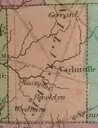 In 1836, several lots in town were used to create a town square in case Woodburn needed to serve not just as township capital, but perhaps as the county capital (what we would call the county seat) as well, which would require space for a capitol building. They didn't want the state to choose Bunker Hill or another smaller town in the vicinity just because there was no space in Woodburn.[6] It never became the county seat, but the town did become an important stop along the stage route from Alton to Springfield where horse teams would be exchanged for fresh teams.[7]