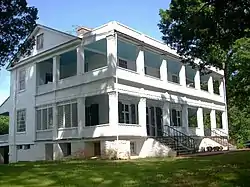 The house is a 2+12-story frame house on a full, raised basement. The house was covered in clapboards. The house is a "Charleston-type" house built to take advantage of summer breezes. It has two-story porch or veranda that wraps around three sides of the house. There are two sets of stairs leading from ground level to the first floor. These lead through French doors to either the parlor or the drawing room. Some of the second floor windows have hinged panels below to allow access to the veranda.[6][13]