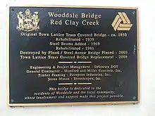 7. "Wooddale Covered Bridge reconstruction complete". Hockessin Community News. Retrieved October 11, 2020.