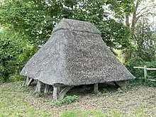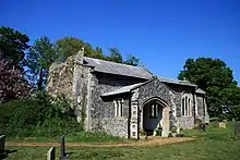 The parish church of St Nicholas dates mainly to the 14th century, its tower collapsing in the early 18th century.[2] The bell frame (bell-cot or bell-cote), with a thatched roof, is preserved nearby, although the bell within it may be of 19th century origin.[3]