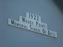 At the end of the war, planning for a school of arts was recommenced. In July 1920 a meeting was called to form a committee to take forward the construction of a suitable building. HR Sykes was elected President, John Henry Cox, Hon. Secretary and W Henderson, Hon. Treasurer, together with a committee of seven others. Around this time locals thought that the building would form a suitable WWI memorial. On 22 November 1920 the wish of the committee to "make the institution a patriotic one was given effect at a special public meeting when rule 1 was amended to read "the institution shall be known as the Woody Point Memorial School of Arts"".[21] The new name was adopted locally from this time but was only given official approval by the Department of Public Instruction in September 1925.[1][20]
