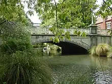 Worcester St runs for roughly 4.3 kilometres (2.7 mi) from west to east through the centre of Christchurch, and is parallel and one block to the south of Gloucester Street. Between Rolleston Avenue and Cambridge Terrace, it is known as Worcester Boulevard, before crossing over the Avon River (pictured). As the street reaches Cathedral Square it has a slight deviation as it curves around the north side of the ChristChurch Cathedral, before continuing eastward towards Latimer Square. Afterwards, the street continues uninterrupted before ending at the intersection with Woodham Road in residential Linwood.