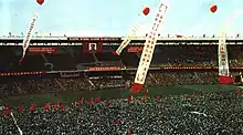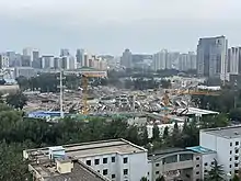 The original Workers' Stadium (simplified Chinese: ; traditional Chinese: ; pinyin: Gōngrén Tǐyùchǎng), often abbreviated as Gongti or Gong Ti (simplified Chinese: 工体; traditional Chinese: 工體; pinyin: Gōng Tǐ), was a multi-purpose stadium in Chaoyang District, Beijing, China. The stadium was built in 1959, and was renovated in 2004 (the concrete structure strengthened, a new rotating display screen and energy-saving devices installed). The stadium was closed for a complete rebuild in 2020 and reopened on 15 April 2023 as a new stadium built on the original site.[2][3][4] It had a capacity of 65,094 and covered a land area of 350,000 square metres (3,800,000 sq ft). It was one of the Ten Great Buildings constructed in 1959 for the tenth anniversary of the People's Republic of China.