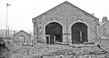 The substantial stone station[15][13][16] housed the headquarters of the C&WJR. There were sidings to the south of the platforms. An engine shed and wagon shops were added there in November 1897.[8] The shed was closed in May 1923; the building was then used as a wagon repair shop for many years.[17][18]