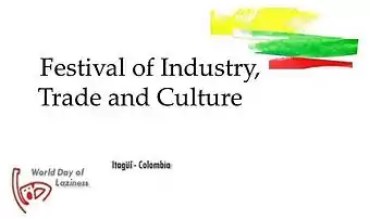 The World Day of laziness (festival) is the closing day of the Festival of Industry, Trade and Culture[1] held in the city of Itagüi - Colombia. This social and cultural festival presents many genres of music: jazz, blues, salsa, rock, hip-hop, reggaeton, vallenato, electronic music, reggae and pop. In addition, the festival features photography exhibitions, painting, dance, musical and theater.