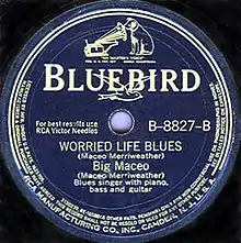 Big Maceo recorded "Worried Life Blues" June 24, 1941, shortly after arriving in Chicago.[4] Lester Melrose produced the song and it became Maceo's first single on Bluebird Records. The song is a moderate-tempo eight-bar blues, with Maceo on vocal and piano, accompanied by frequent collaborator, guitarist and fellow recording artist, Tampa Red[1] and bassist Ransom Knowling.