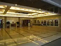 The lobby is located on the first floor and is accessed via an escalator from the outside.