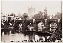 The bridge c.1880 with Hereford Cathedral in the background