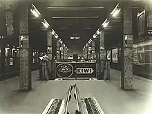 The station opened on 28 February 1932.[3] Wynyard was originally constructed with six platforms (the existing four platforms are still numbered from 3 to 6), with platforms 1-4 located on the upper level and platforms 5 and 6 on the lower level. The original intention was that Platforms 1 and 2, located adjacent to platforms 3 and 4, would eventually serve the eastern pair of railway tracks across the Harbour Bridge for a proposed railway line to the Northern Beaches. In the interim, with construction yet to begin on the Northern Beaches line due to lack of funds, they were used as a terminus for North Shore tram services on Sydney's tram network, operating from the bridge's opening in 1932 until 1958. A feature of these lines was Australia's only underground tram terminus.[1] On 22 January 1956, the lines from platforms 5 and 6 were extended to Circular Quay as part of the City Circle.[1]