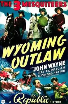 Wyoming Outlaw is a 1939 American "Three Mesquiteers" Western film directed by George Sherman and starring John Wayne, Ray Corrigan, and Raymond Hatton.[1] Wayne played the lead in eight of the fifty-one films in the series.